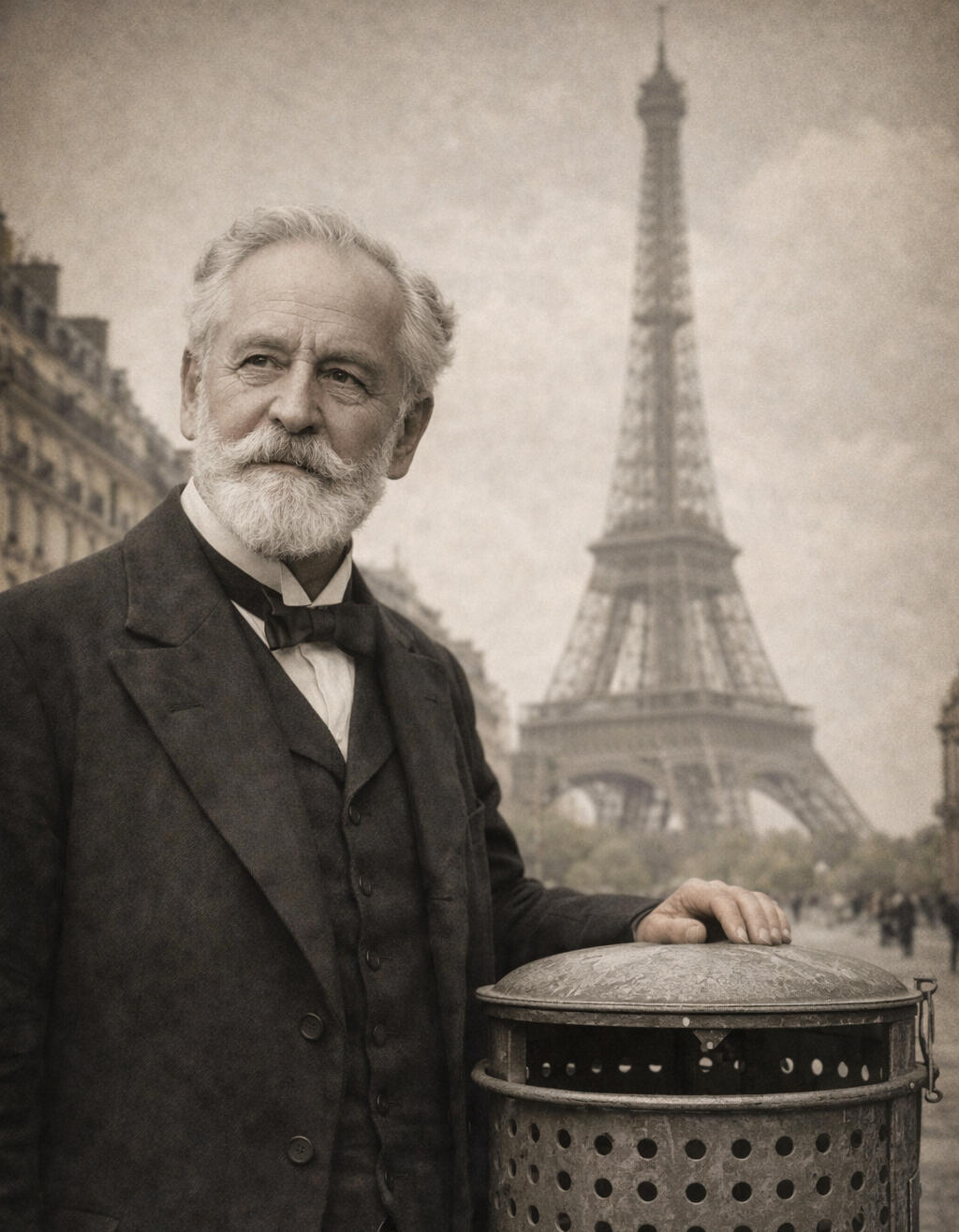 “En 1884, mi antepasado Eugène Poubelle cambió París para siempre al introducir los primeros contenedores estandarizados para residuos, recipientes que aún hoy llevan nuestro nombre.