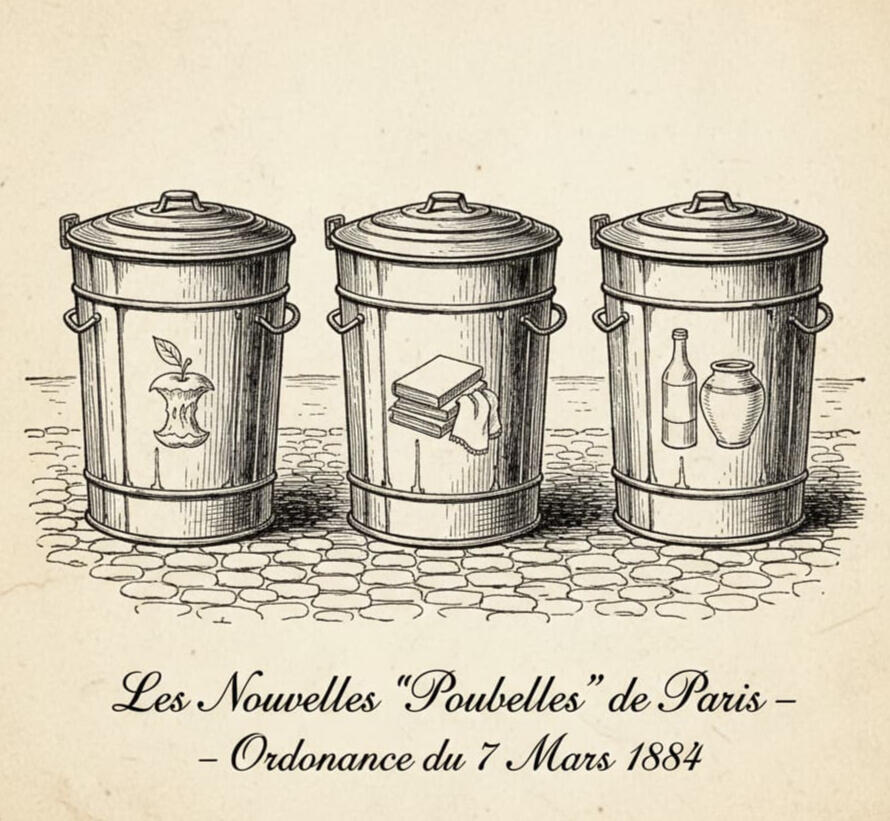 El 7 de marzo, el prefecto del Sena, Eugène Poubelle, firmó un decreto revolucionario que obligaba a todos los edificios a disponer de tres contenedores específicos: uno para residuos orgánicos, uno para papel y telas, uno para vidrio. La medida generó una fuerte oposición entre los propietarios de edificios. La prensa parisina comenzó a burlarse de los nuevos contenedores llamándolos “Poubelles”, ridiculizando al funcionario que había impulsado la medida.Sin embargo, el sistema funcionó tan bien que el término pasó de ser una burla a convertirse en la palabra francesa universal para “basurero” o “contenedor de basura”.Eugène no solo inventó un recipiente.